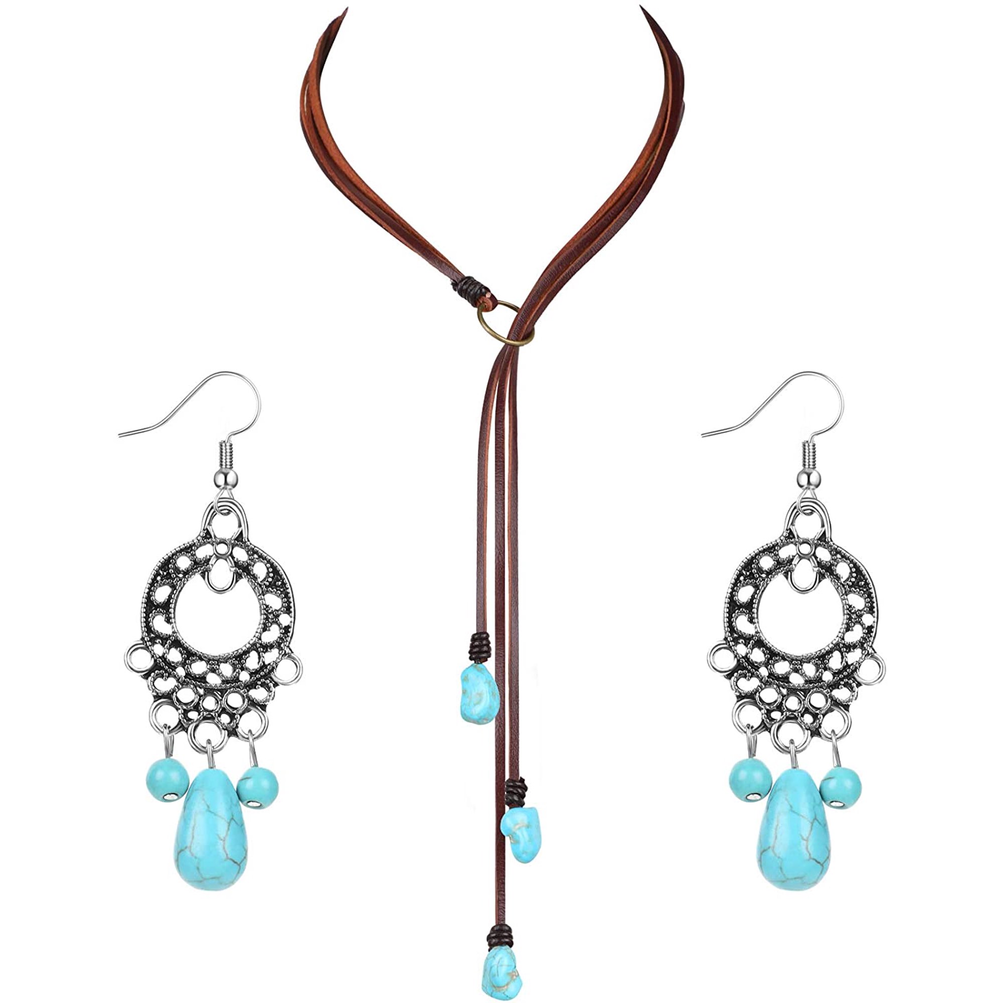 Bohemian Turquoise Pendant Necklace And Earrings Long Choker And Vintage Turquoise Dangle Earrings For Women Statement Ladies Handmade Boho Jewelry Sets Walmart Canada
