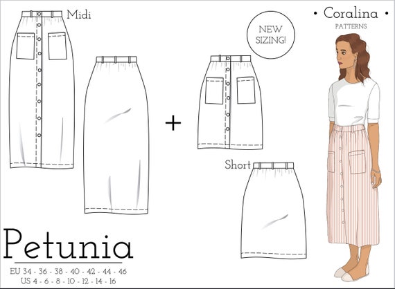 Button Up Skirt With Pockets Pdf Sewing Pattern Sizes 4 16 Etsy Canada